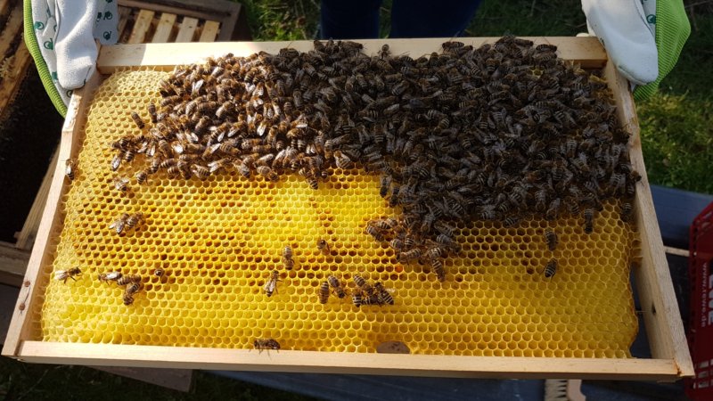 Wie erwartet zeigte sich die neue Königin im Ableger. Das die Königin erfolgreich Befruchtet wurde, zeigte sich dann auch schnell an den „Stiften“ in den Brutwaben.